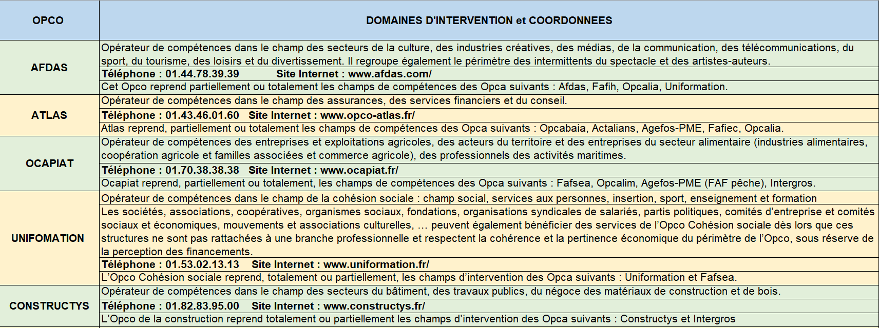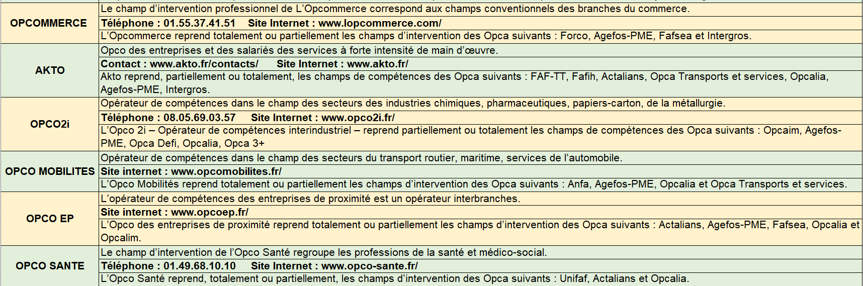 Voici les grands domaines d’intervention de chaque OPCO.