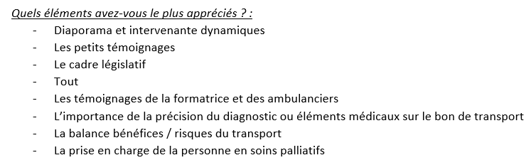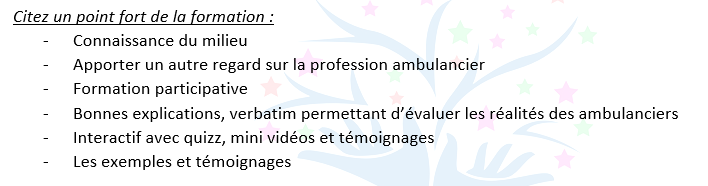 Commentaires qualitatifs cités par les stagiaires :