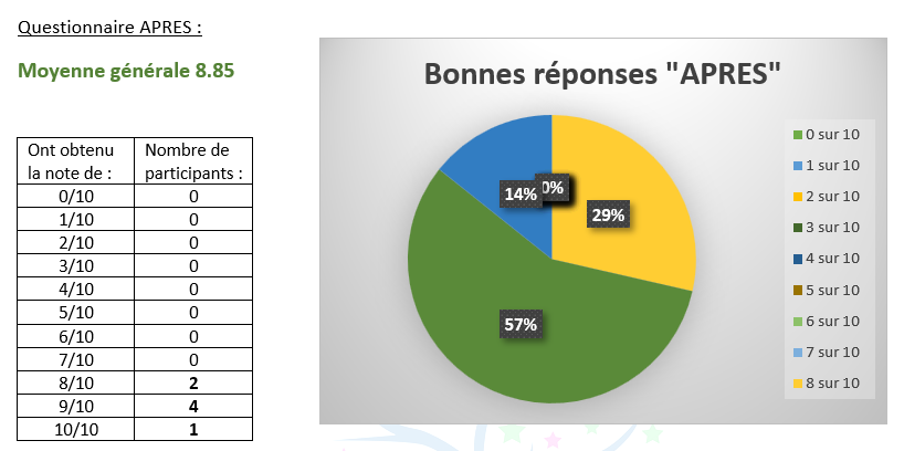 RESULTATS D'EVALUATION DES CONNAISSANCES AVANT ET APRES