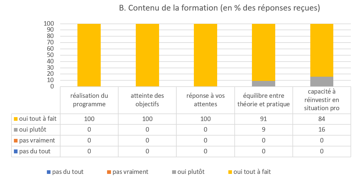 Evaluations des stagiaires sur le déroulement et les contenus de la formation